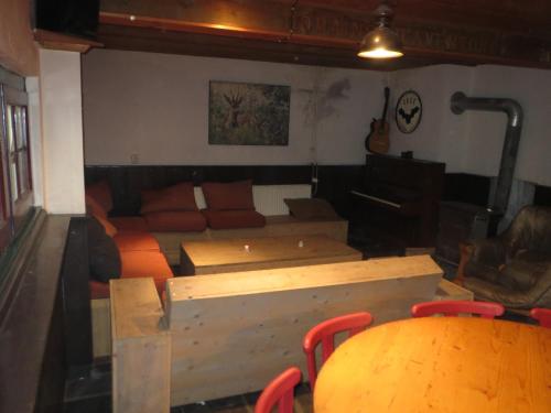 U heeft de beschikking over twee ‘old school’ slaapzalen voor ieders 16 personen (32 totaal). Hier waant u zich in een berghut, hoog in de Alpen. Op de begane grond vindt u een grote huiskamer met open haard, een keuken en een gezellig barretje. Vanaf het terras aan de achterzijde heeft u zicht op de indrukwekkende rotswanden waar veel van onze klimactiviteiten plaatsvinden.