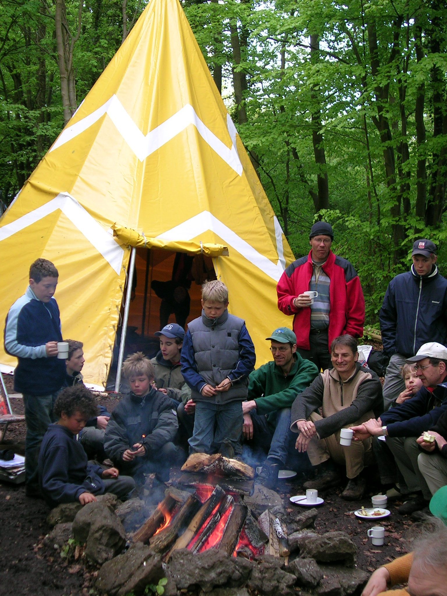 Buiten in de groeve staan onze vier stoere tipi’s, ieder met ruimte voor 10 personen.